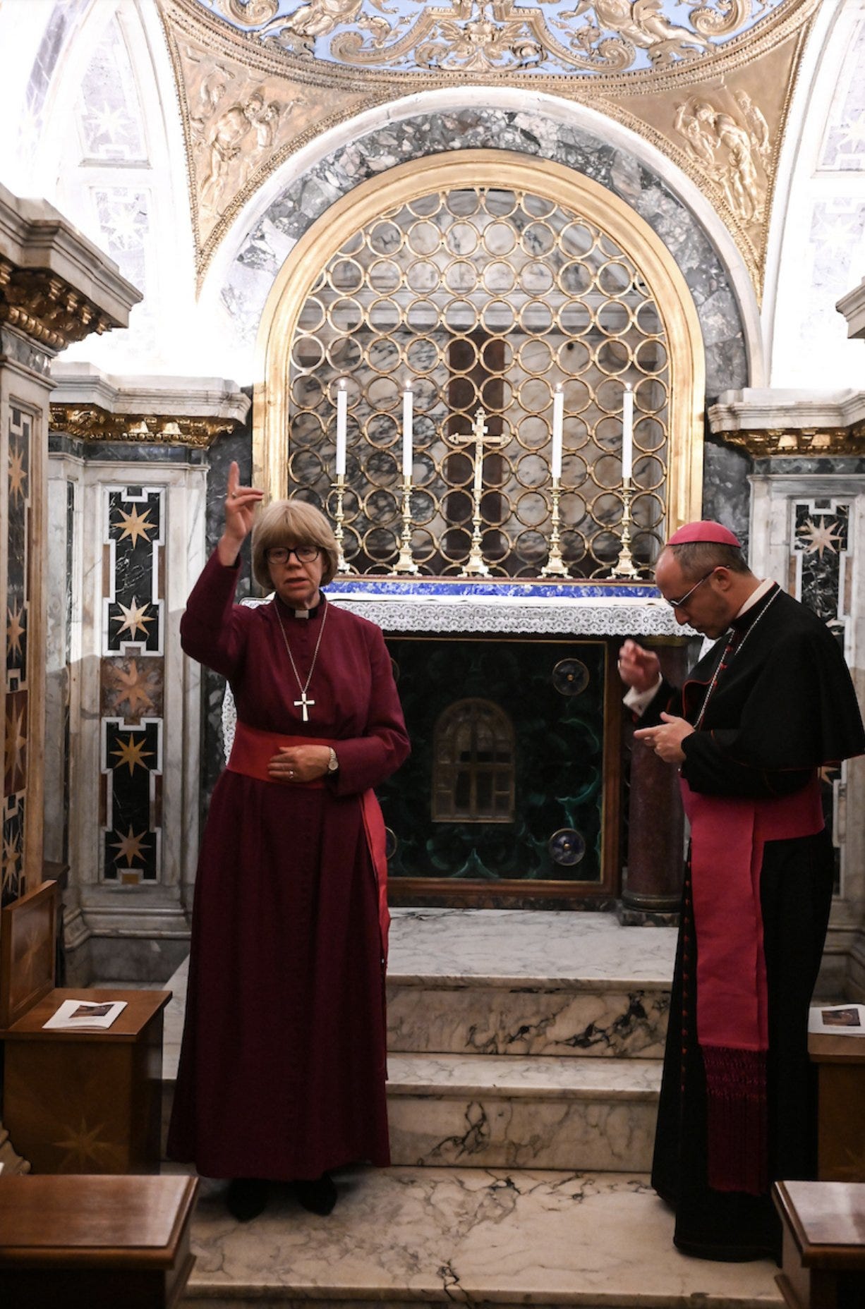 But it was pre-empted by a video clip shared by Mullally online, in which the secretary for the Dicastery for Christian Unity was seen blessing himself while Mullally delivered a blessing in the Petrine Chapel, situated right next to St. Peter’s relics. Many opined that Archbishop Flavio Pace’s actions were severely misguided, given the fact that the Catholic Church does not recognize the validity of Protestant orders.