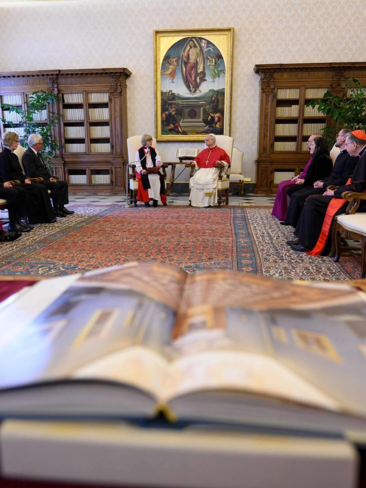 Leo XIV welcomed Sarah Mullally to the Vatican for a private meeting and joint prayer this morning, before the Church of England archbishopess presided over Anglican Evensong in one of Rome’s ancient Catholic churches this afternoon.